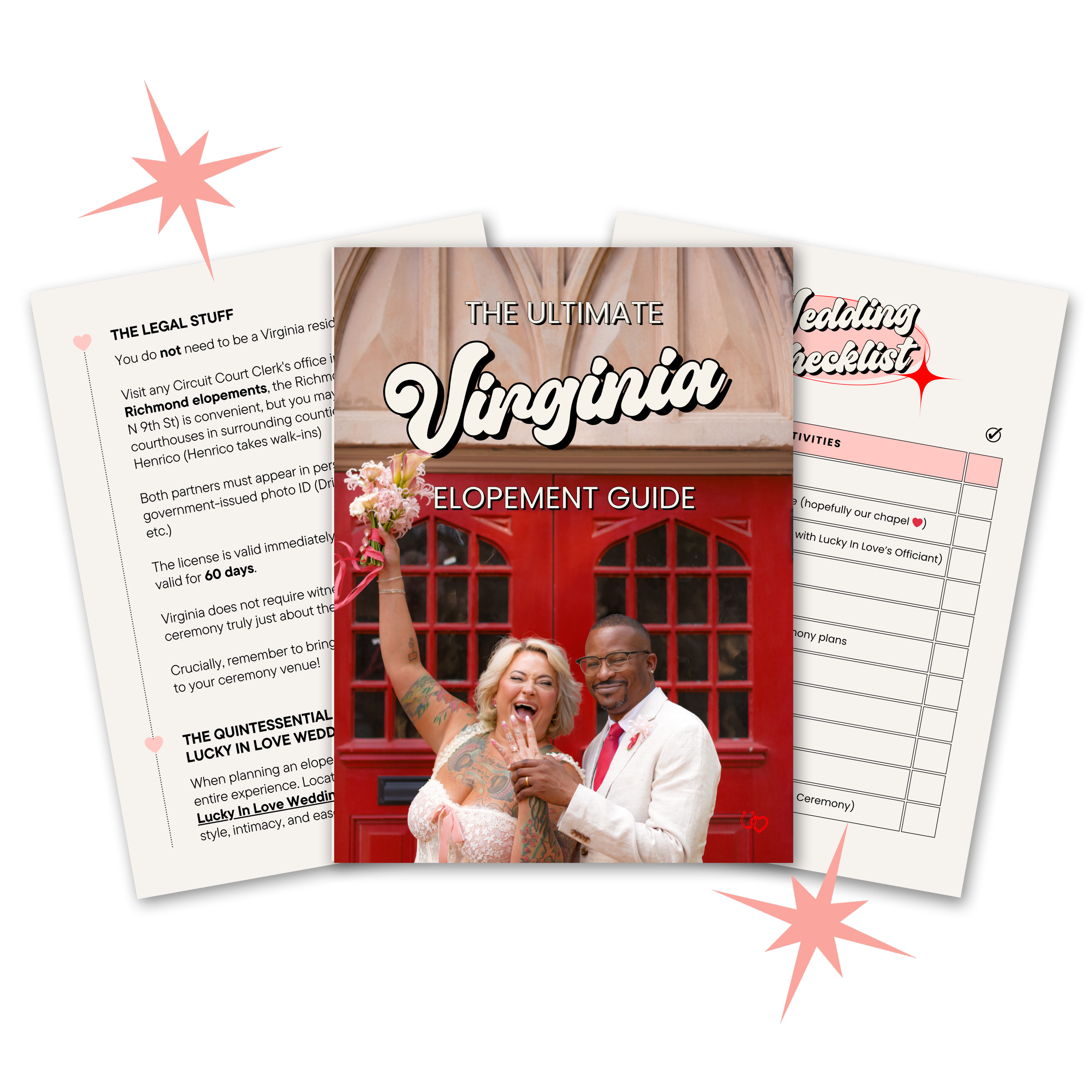 Planning your dream elopement in Richmond, VA? Download our free Elopement Guide to help you get started! Packed with expert tips, location ideas, vendor recommendations, and a step-by-step planning checklist, this guide is your go-to resource for a stress-free, intimate celebration. Simply click the button and the guide will be delivered straight to your downloads.